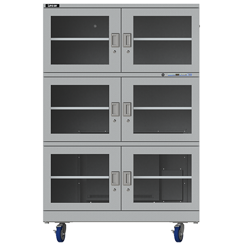 SD Series storage cabinets deliver outstanding performance to store your moisture sensitive components and PCBs as a result of a high-performance drying unit. The U-2000 series drying unit reaches very reliable, low humidity values of less than equal to 2% RH but during daily operation with regular door openings an average of less than 5% RH is guaranteed. Humidity, temperature, and alarm functions are shown and can be adjusted on a digital display. The cabinet series ensures optimal storage conditions at a relative humidity less than 5% RH with efficient energy use. Totech’s SD series are made to store your moisture sensitive products. Storage cabinets less than 5% RH are perfect to stop your MSL floor life and freeze it as long as needed.